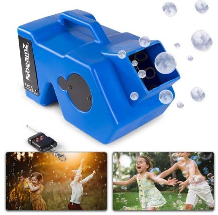 This lightweight and reliable bubble machine creates a whirling effect thanks to the fan. The machine creates lots of bubbles per minute. This comes with a 1L bubbles !!